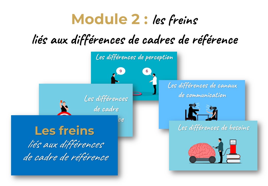 Avec ce module, comprenez les défis des différences de cadre de référence dans la communication, des différences de perception aux différences de besoins individuels, ce module vous permettra de vous adapter à vos interlocuteurs et ainsi créer des connexions plus profondes pour des relations harmonieuses.